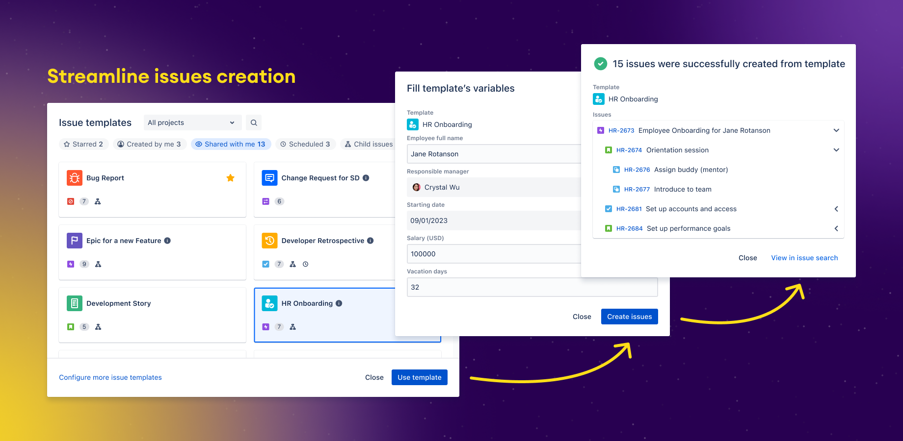 Try it free!Browse and search templates to create and update epics, issues and subtasks from template or create entire issue structures.